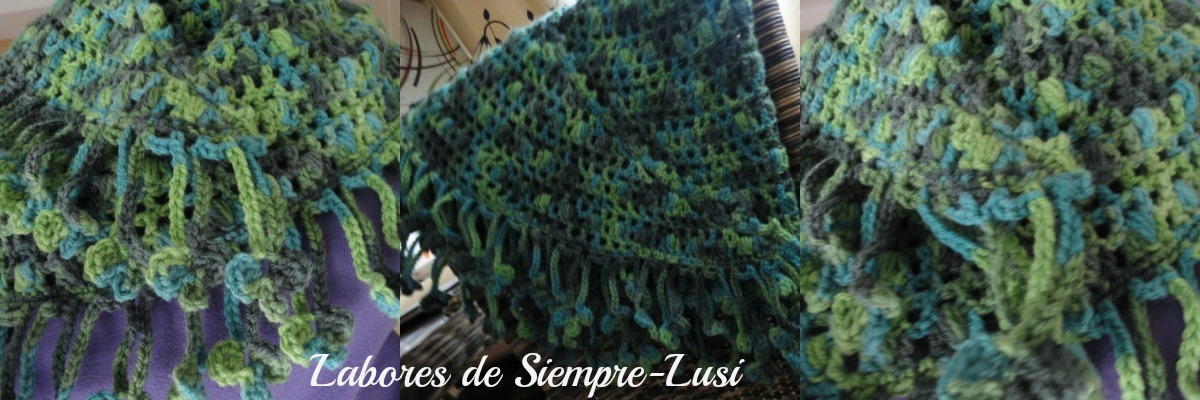 Aqui os presento a mi nuevo chal Crecent moon (luna creciente) en esta ocasión el acabado va con flecos de tréboles